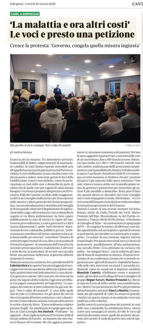 Articolo “Anziani e partecipazione ai costi spitex, la decisione solleva ancora polemiche” – 18.03.2026